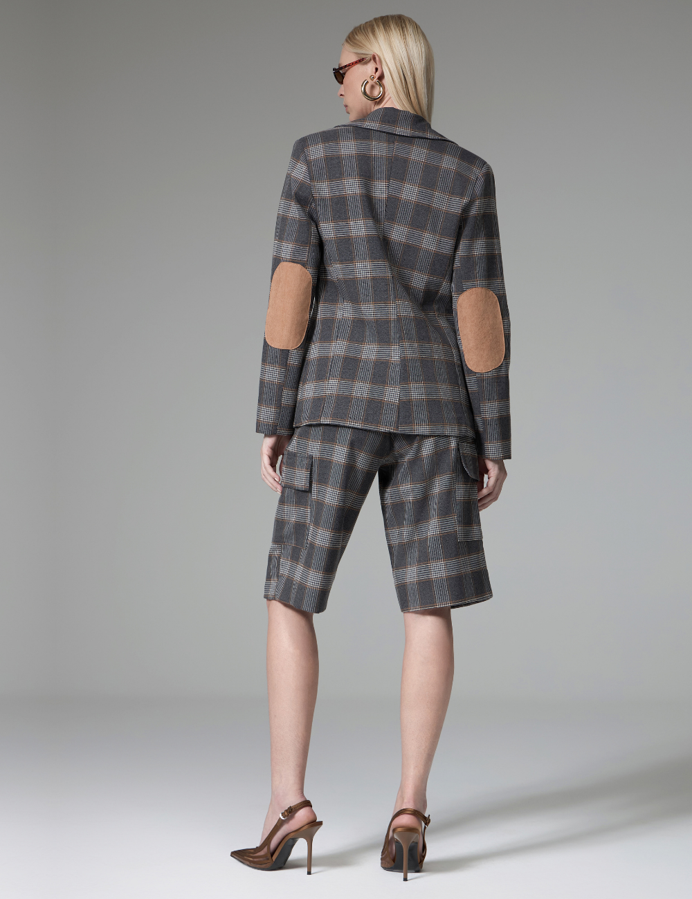 A bermuda xadrez com bolsos é confeccionada em alfaiataria, com tecido leve e confortável, garantindo elegância e praticidade ao visual.