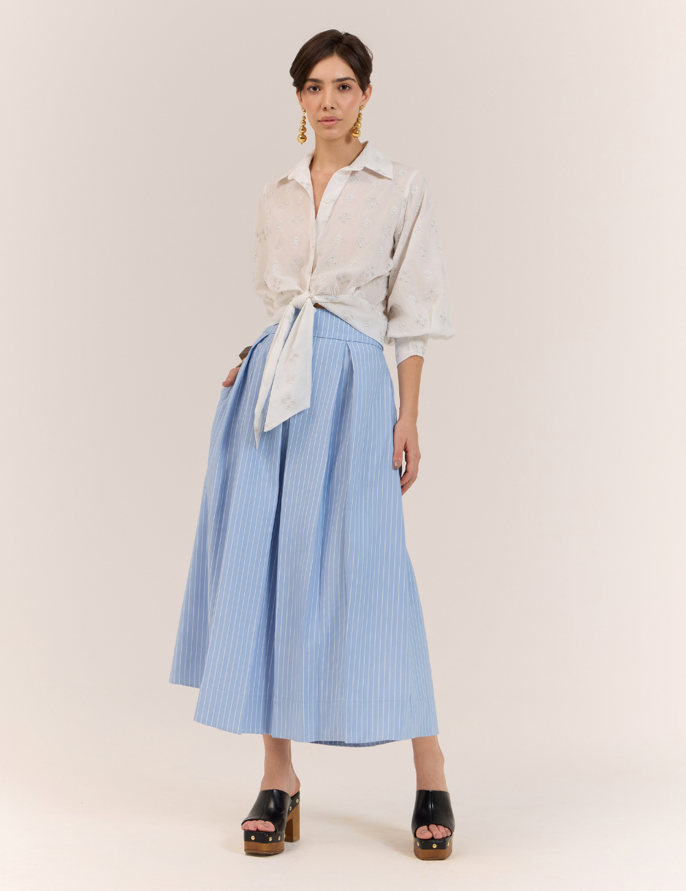 Uma camisa sofisticada e feminina, perfeita para compor produções elegantes com toque artesanal e contemporâneo.