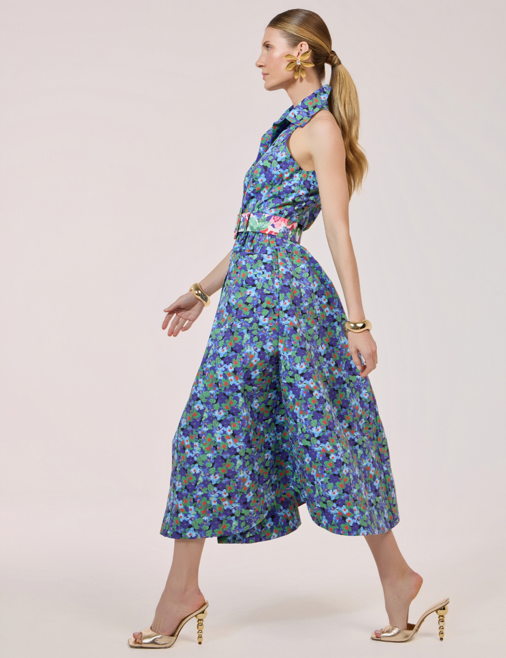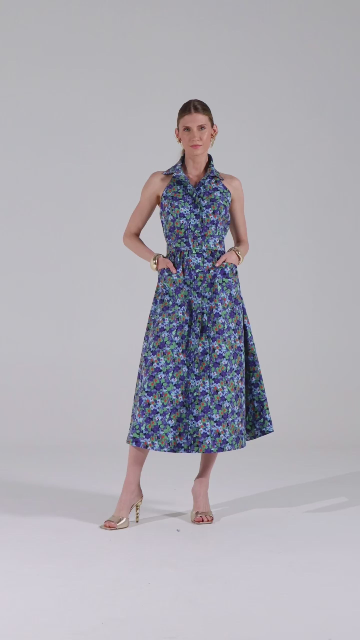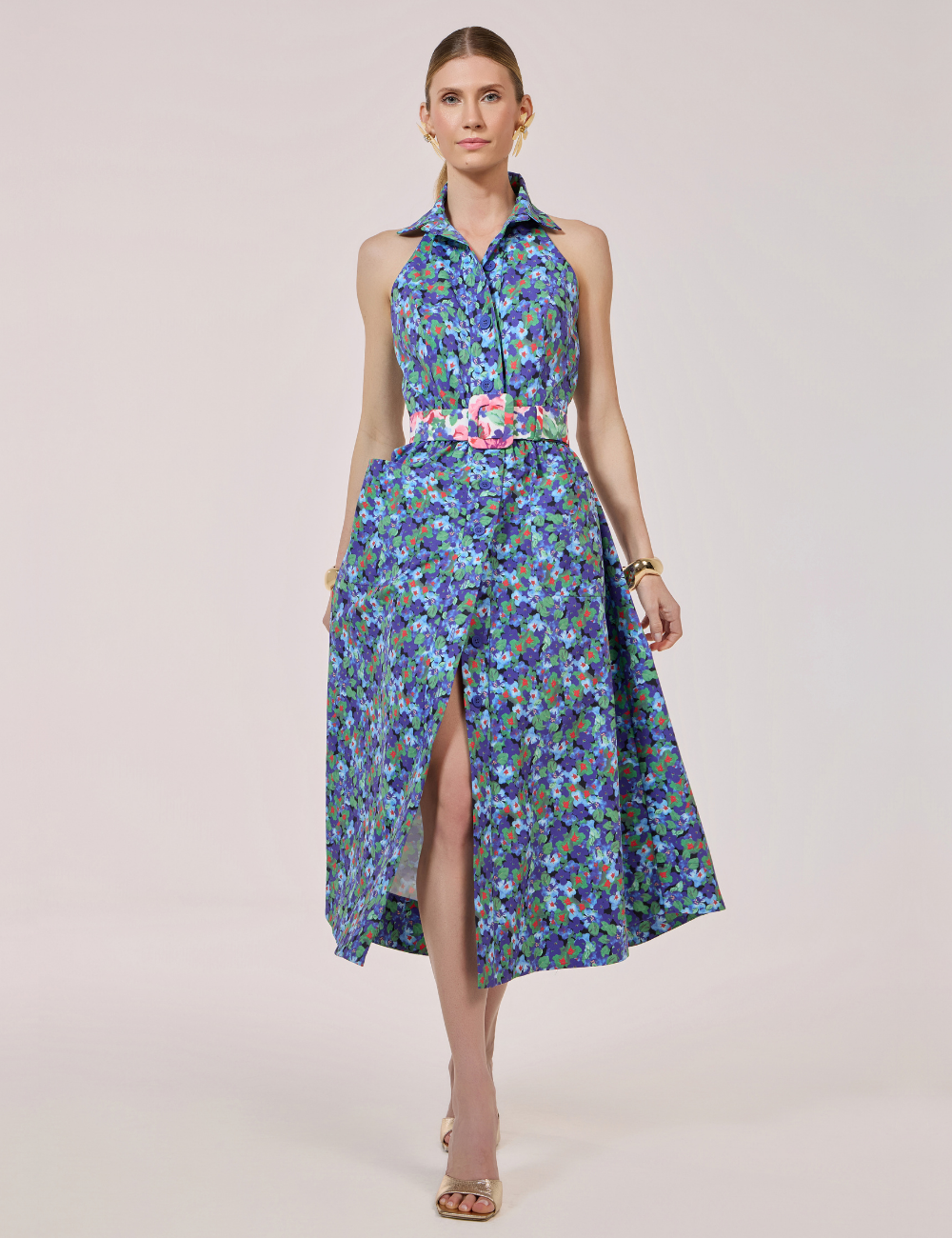 O vestido longo floral com bolsos é confeccionado em poliéster com tecido de alfaiataria , que garante estrutura e conforto . A peça traz a estampa exclusiva “Amalfi” , que adiciona frescor e sofisticação à produção.