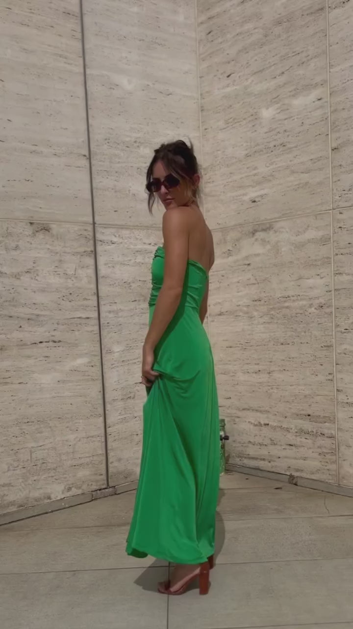 Vestido Longo Verde em Jersey com Fenda